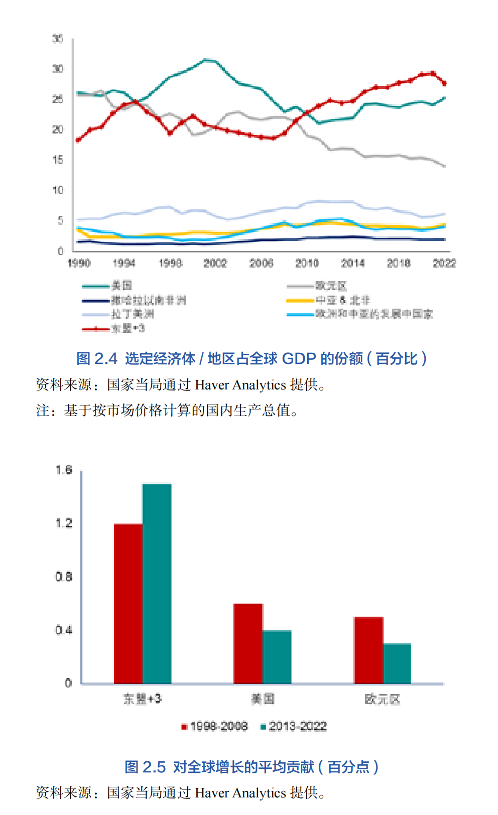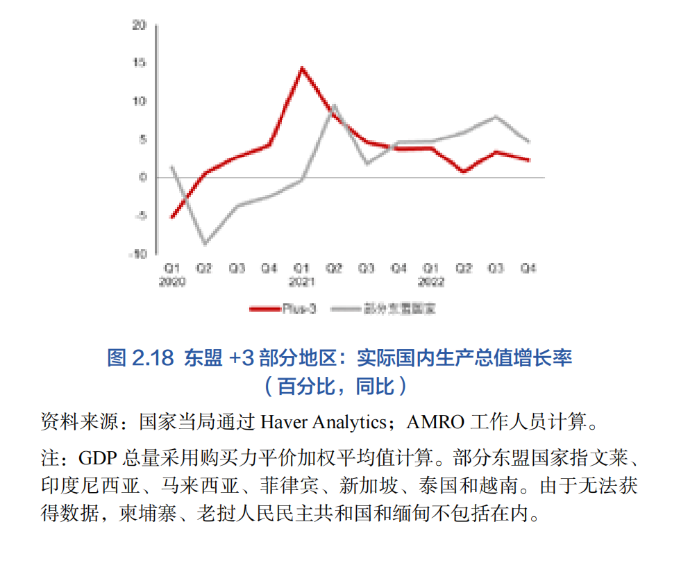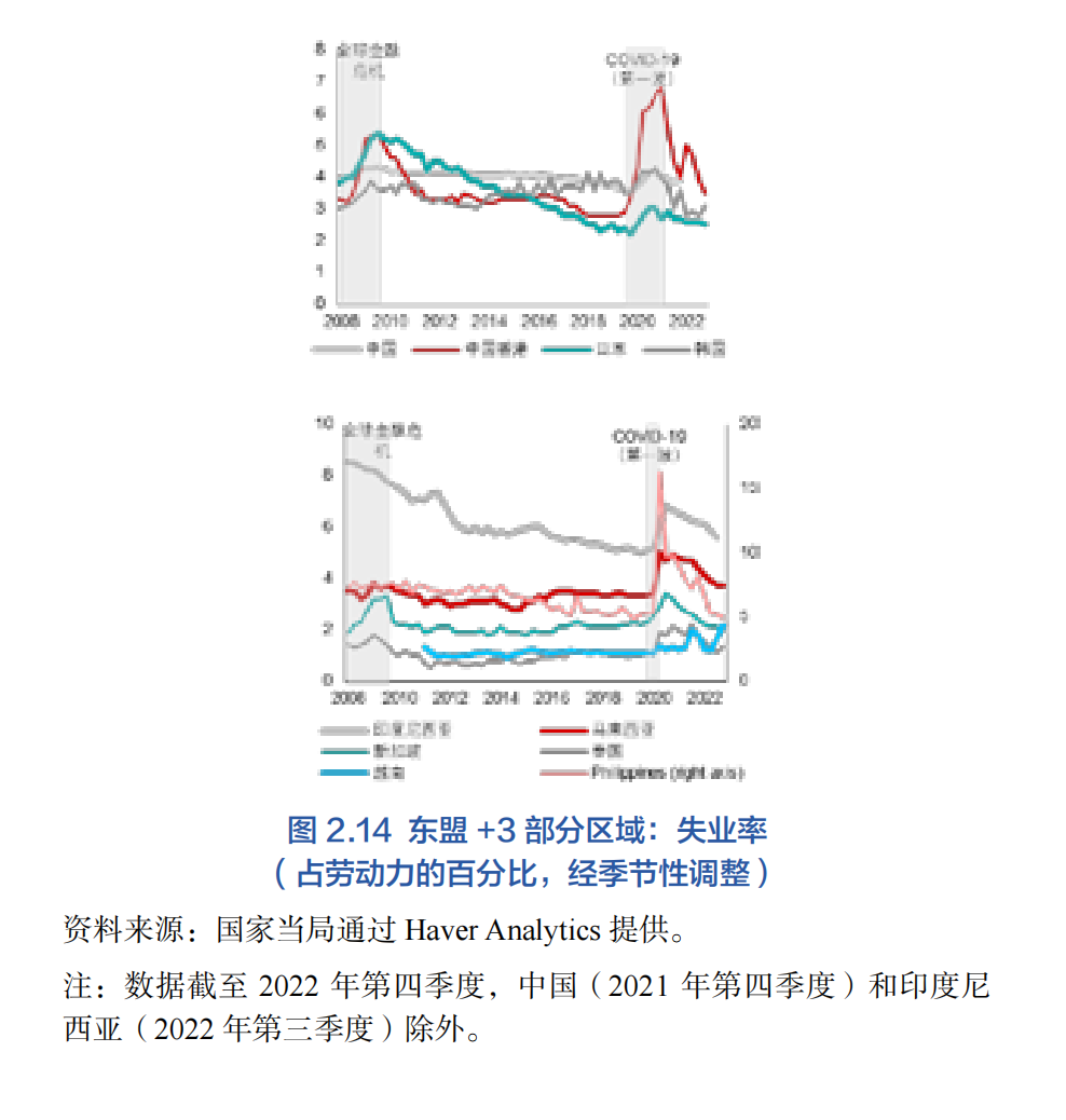 本文結構如下。第二節回顧了過去10年間(2013-2022年)本區域經濟發展情況,包含從全球金融危機后恢復時期到新冠疫情結束之間的年份。第三節總結了過去10年在區域一體化和合作方面取得的深刻影響本區域當下經濟格局和未來前景的進展。第四節分析該地區在新冠疫情之后面對人口老齡化和氣候變化這些長期挑戰的情況下未來10年的經濟前景。
