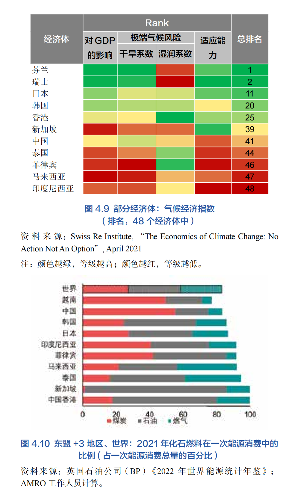 在氣候變化方面,"東盟+3"經濟體面臨著巨大的實體風險和轉型風險,將對未來的發展前景產生重大影響。在實體風險方面,東盟的幾個經濟體——緬甸、菲律賓、泰國和越南——在1999年至2018年期間是世界上因與天氣有關的災害造成死亡人數最多、經濟損失最大的10個經濟體之一(AMRO 2021)。就轉型風險而言,減緩氣候變化——長期以來被認為是世界上碳密集度最高的經濟體減少溫室氣體(GHG)排放的漸進過程——現已成為全球的當務之急。
