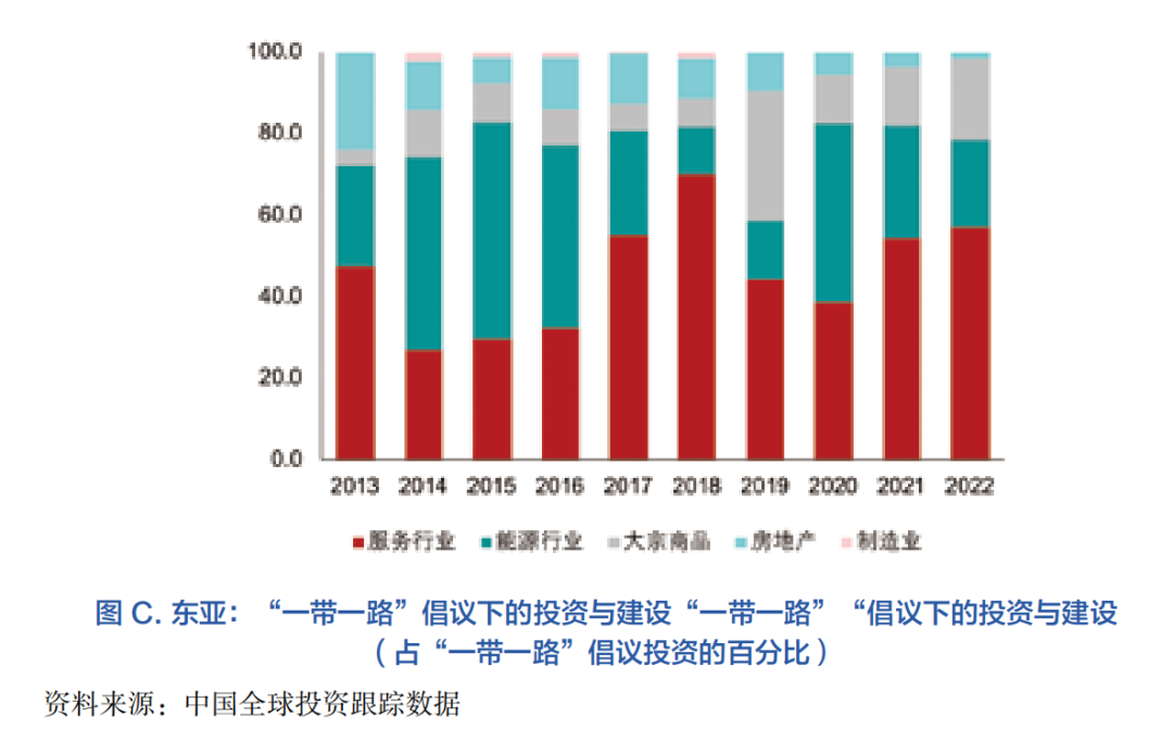 在此背景下,中國的“一帶一路”倡議(BRI)河在縮小地區基礎設施差距方面發揮作用。自2019年以來,“一帶一路”倡議在本區域的投資加速增長,在亞洲的投資日益多樣化(圖B和圖C)。“一帶一路”倡議的目標是加強沿線各國互聯互通,促進跨境貿易和投資增長,填補沿線國家巨大的基礎設施缺口,這一倡議可以為本區域內的經濟體提供融資機會,為區域基礎設施建設添磚加瓦增添動力,同時通過生產網絡產生積極影響。在氣候投資方面,為應對氣候問題,盡管各項目存在差異,越來越多的“一帶一路”項目將環境因素納入考量。這將進一步增強“一帶一路”倡議在綠色基礎設施融資方面的吸引力,如適應氣候的基礎設施、該地區的防洪設施和海岸線保護設施。同樣,在醫療衛生領域,區域經濟體可以充分利用發展醫療衛生領域基礎設施或以醫療設備和醫療技術轉讓為主要目的“一帶一路”的項目。