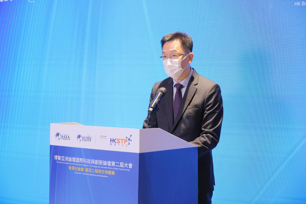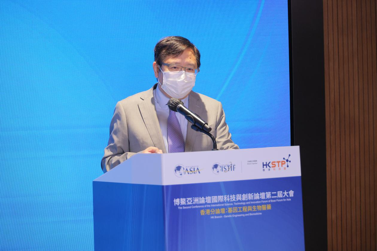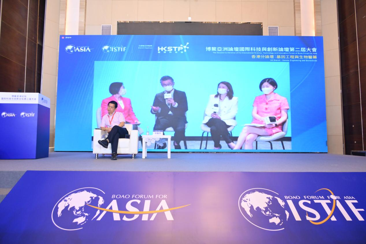 基因工程與生物醫藥分論壇在香港、廣州兩地以互聯形式舉行。復旦大學生命科學院院長、遺傳工程國家重點實驗室主任、粵港澳大灣區精準醫學研究院執行院長林鑫華擔任廣州會場主持,香港科技園公司主席查毅超代表香港方面致辭。香港特別行政區政府創新及科技局局長孫東,香港交易所上市主管陳翊庭,香港大學李嘉誠醫學院生物醫學學院教授、香港大學干細胞轉化研究中心總監劉澎濤,香港中文大學醫學院腫瘤學系系主任莫樹錦,香港微生物菌群創新中心總監及精進微生物科技有限公司聯合創辦人黃秀娟,香港科技園公司轉化研發所高級總監劉思雅和蘇州科銳邁德生物醫藥科技有限公司聯合創始人、副總經理左熾健就基因工程與生物醫藥的行業趨勢、科技實踐、人才培育、未來愿景等分享看法,進一步推動了香港和廣東兩地在創科領域的合作交流。